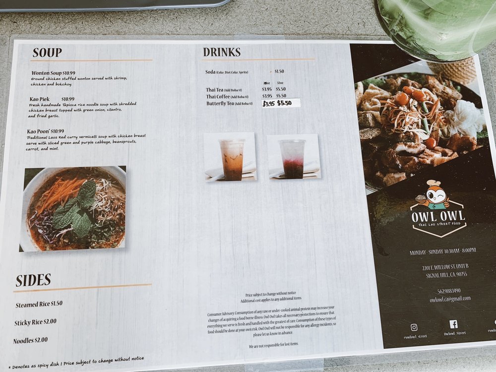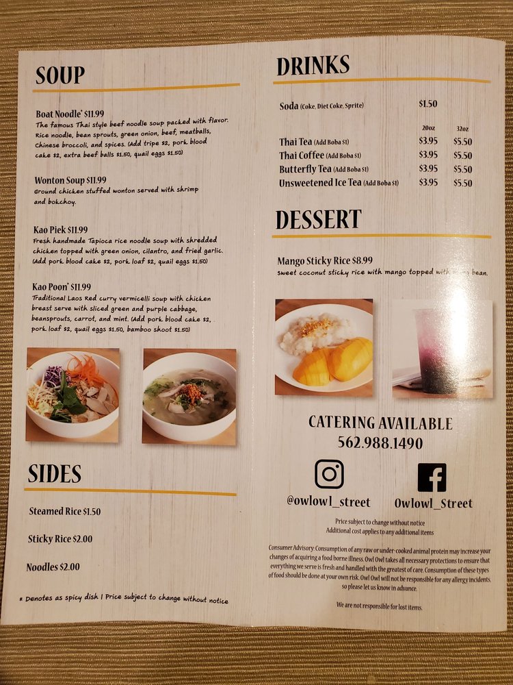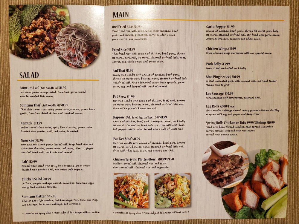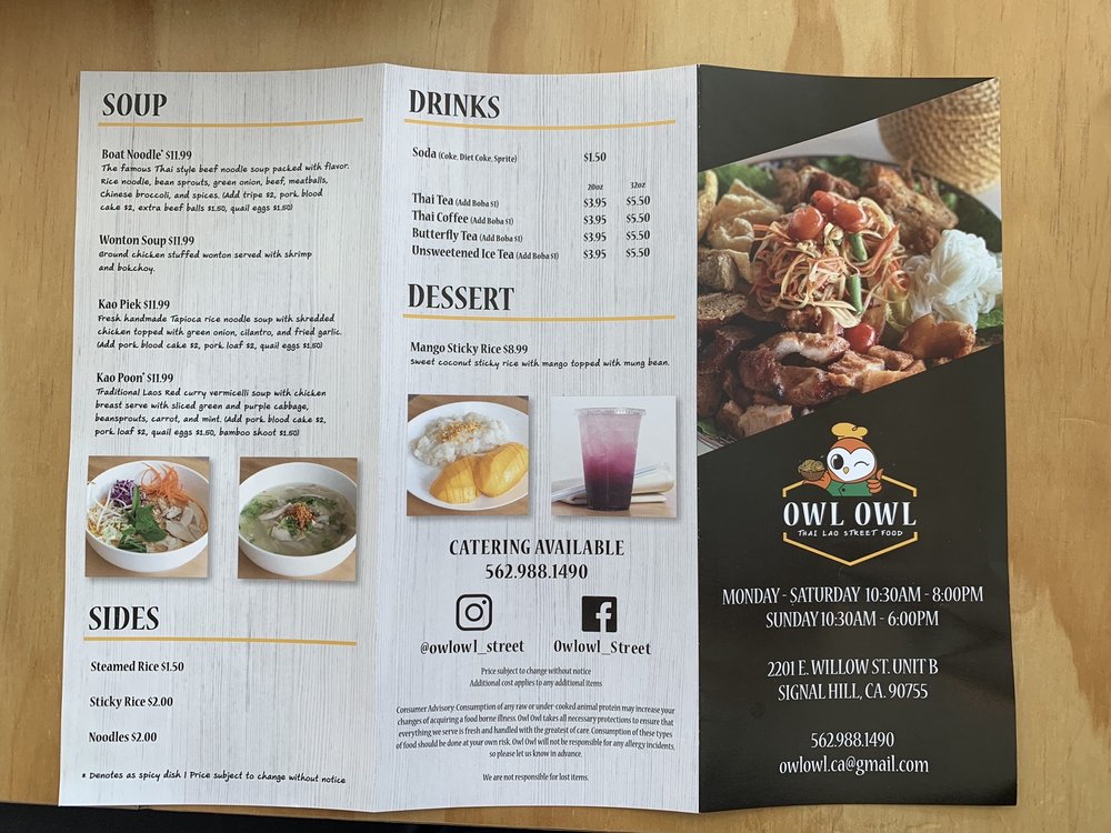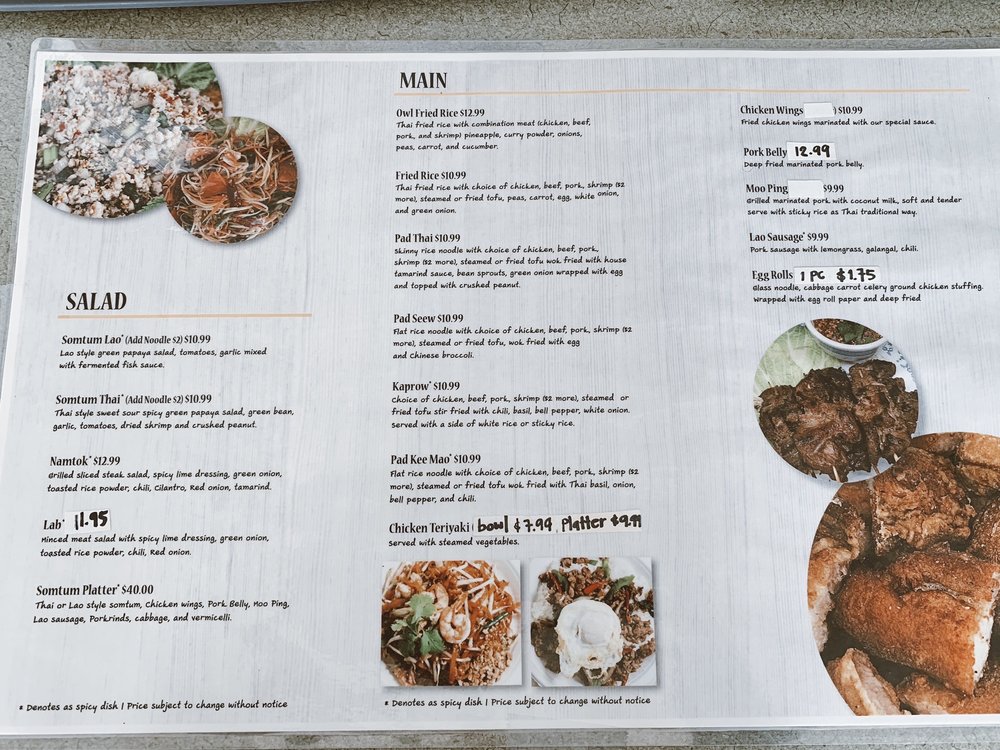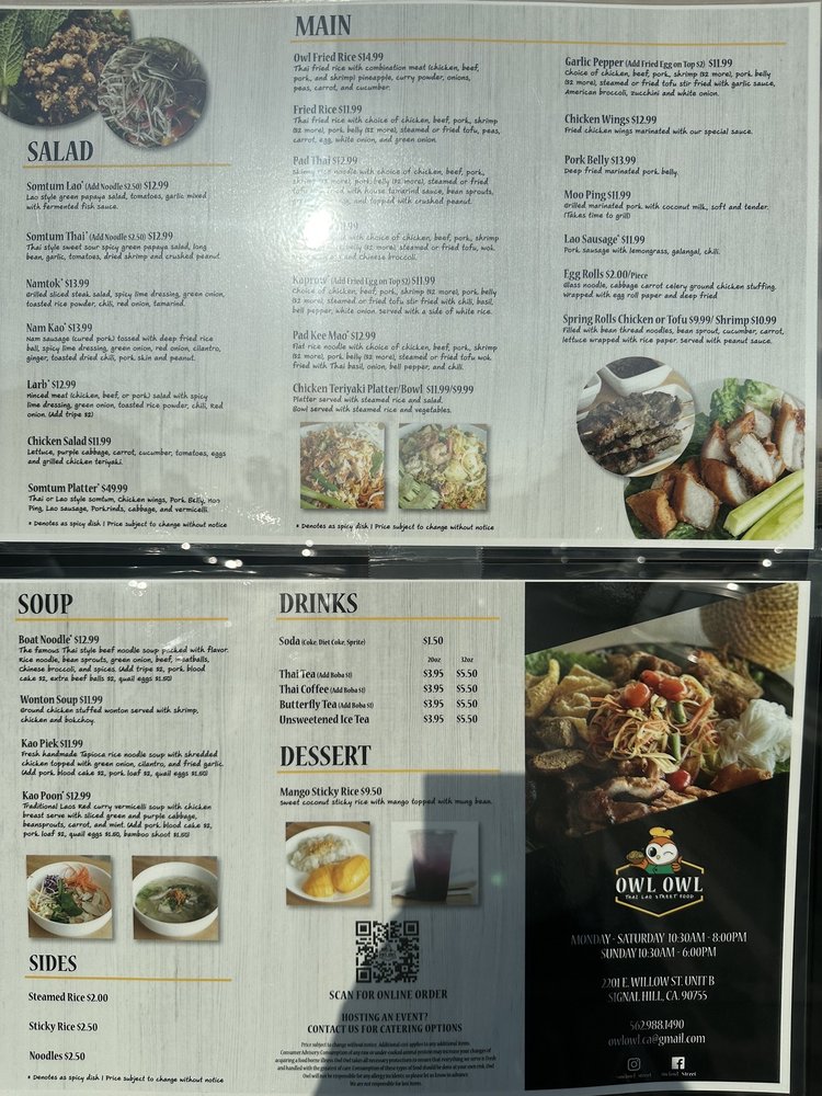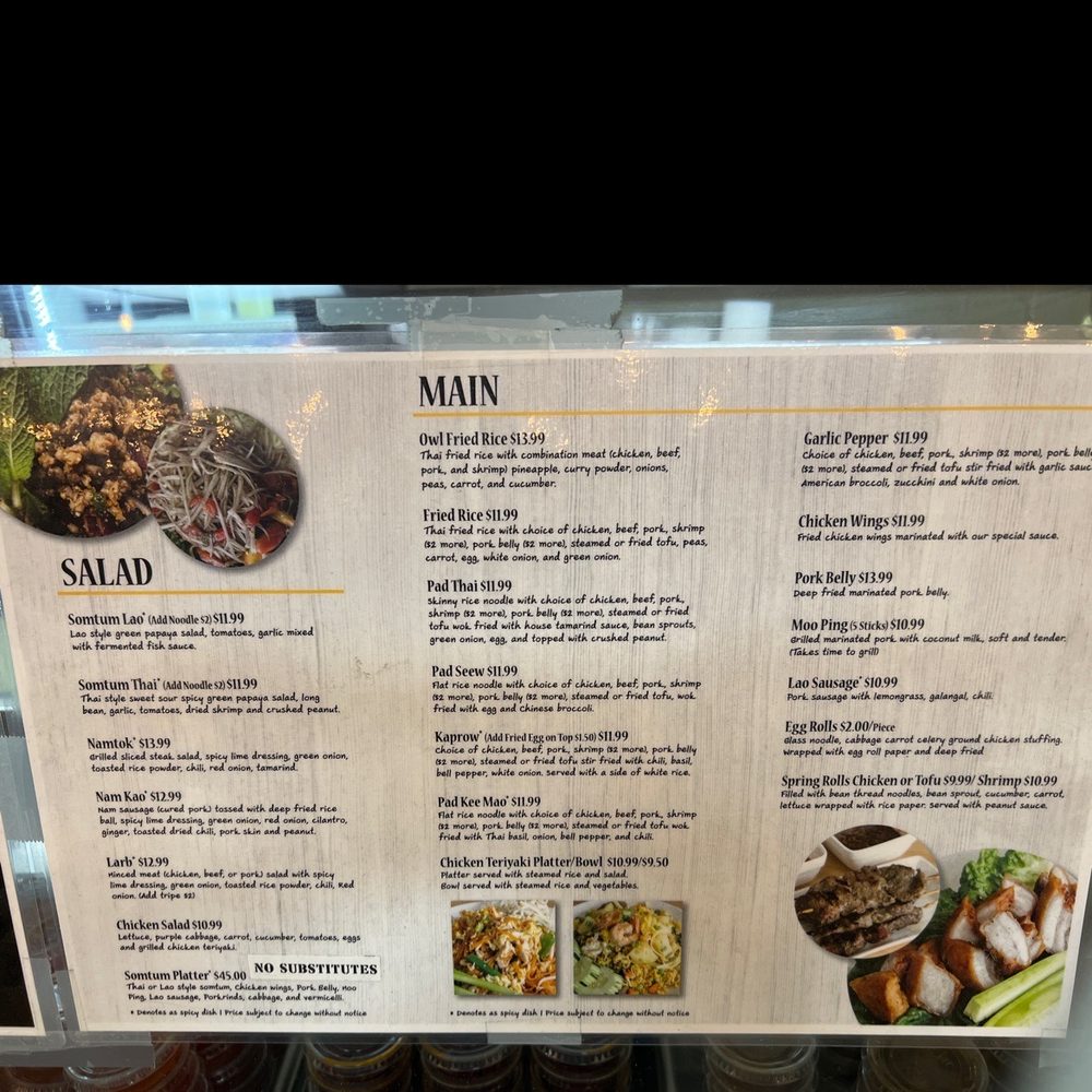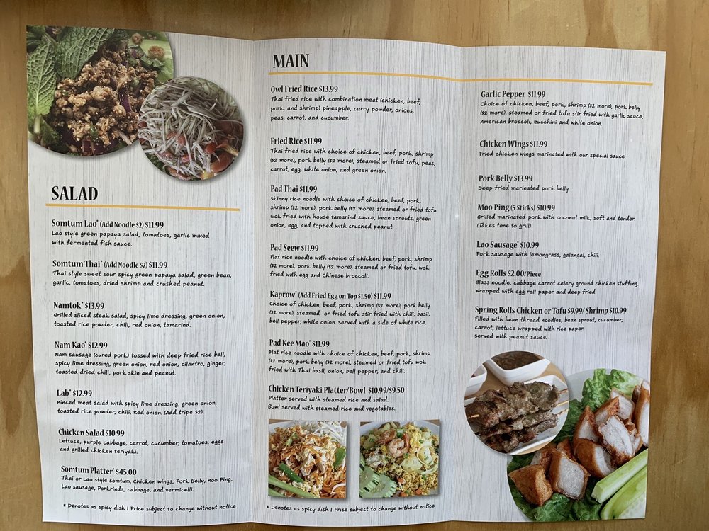 OWL OWL Thai Lao Street Food Menu (Update 2025)